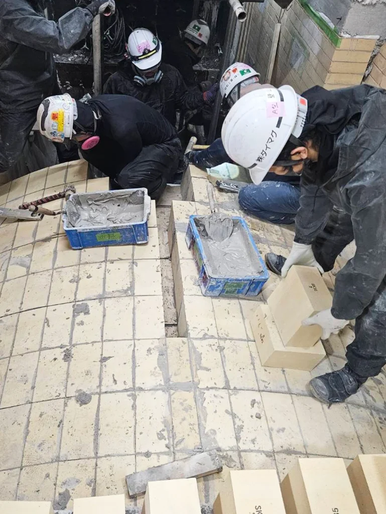 レンガ工事、不定形工事など様々な耐火物を使った工事の総称を築炉工事といいます。